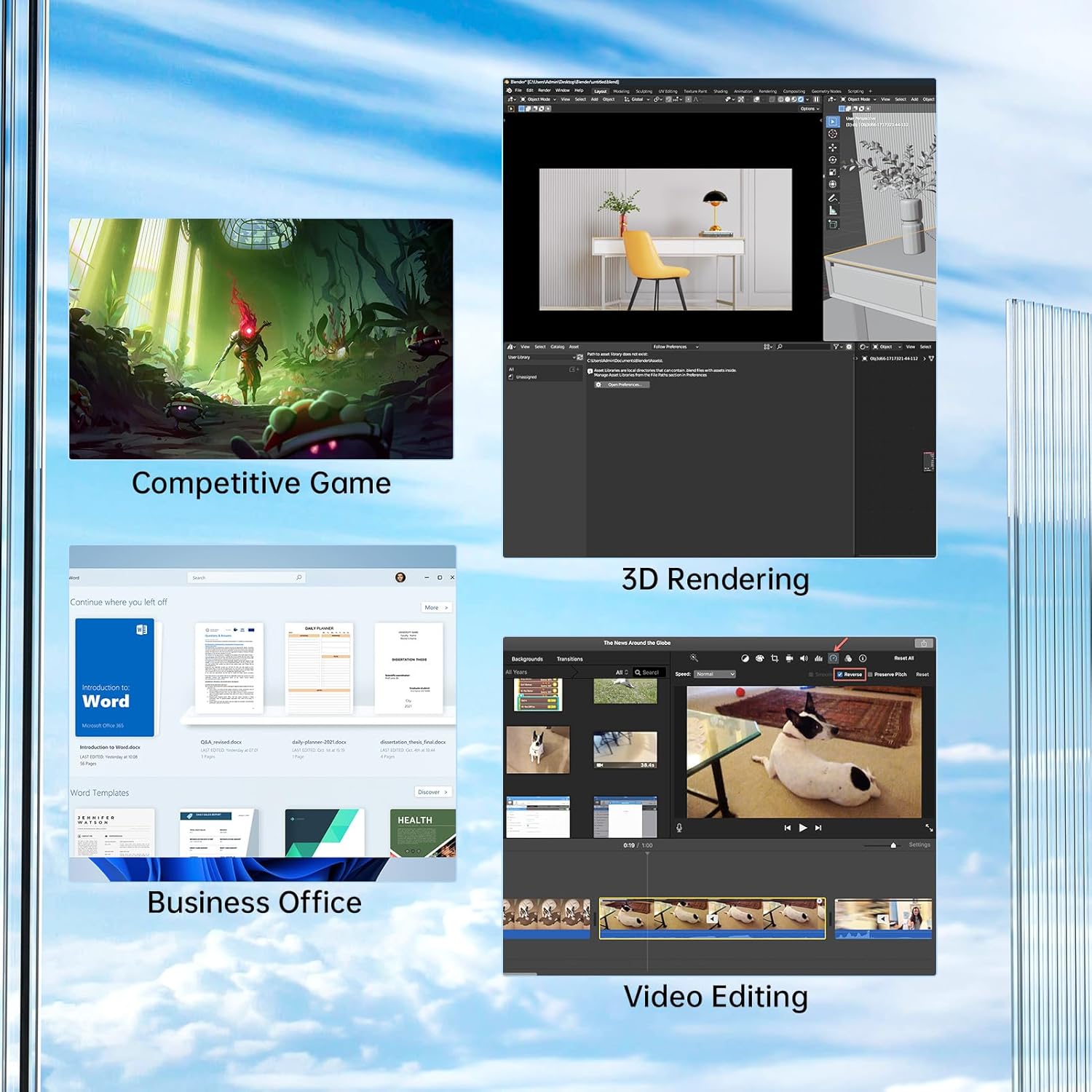 【Powerful Silent Cooling System】The micro PC featuring an aluminum integrated body equipped with a powerful and advanced silent cooling system, large mesh structure with high-quality fans and efficient heat sinks to maintain optimal operating temperatures. Vapor chamber+45W TDP, ACEMAGIC mini PC incorporates the optimal cooling solution to unleash the machine’s powerful performance.