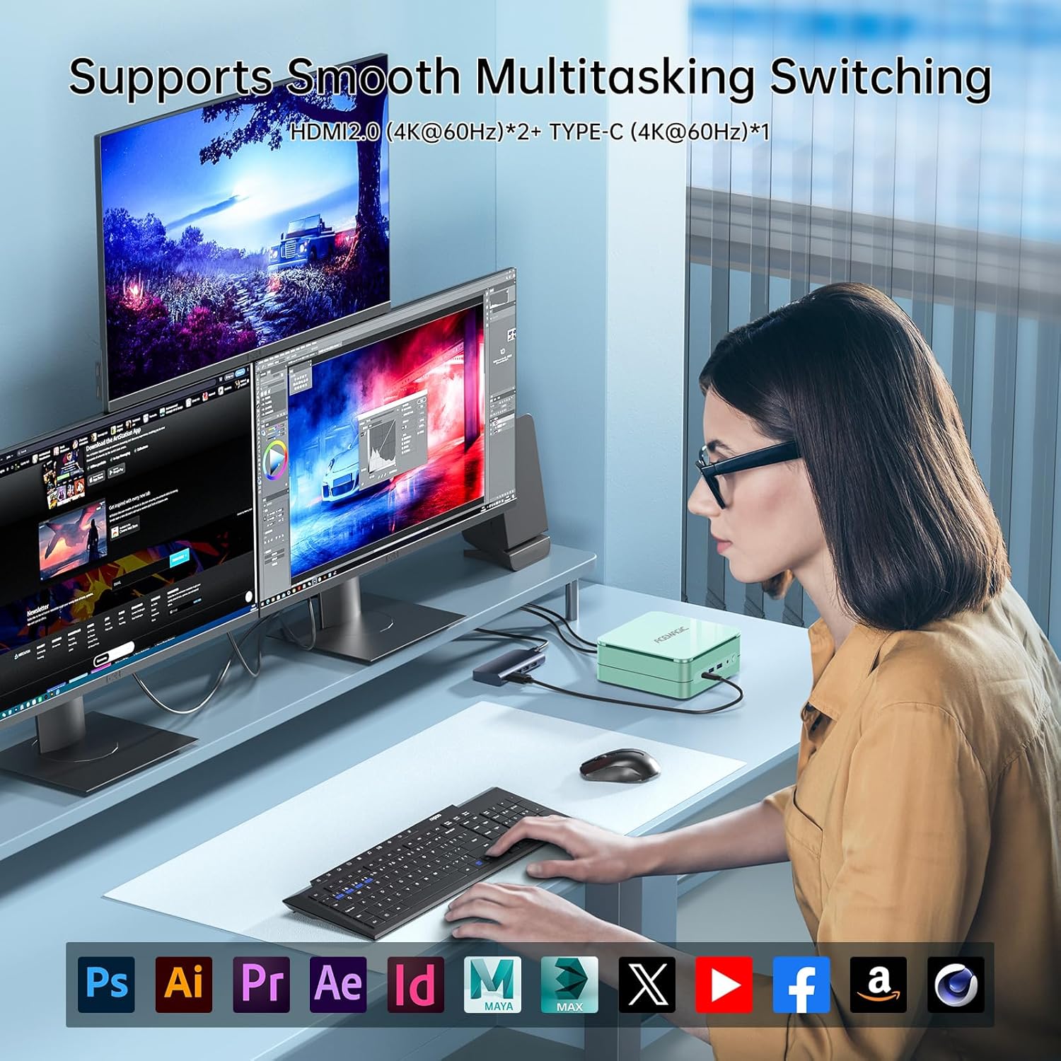【High-speed WiFi6 + BT5.2】Mini desktop computer Equipped with 2.5Gbps LAN, Wi-Fi 6 and Bluetooth 5.2. Enabling faster connections to a variety of wireless devices such as headsets, mouse, keyboard, and more. Experience faster speeds, reliable connections, and enhanced performance.